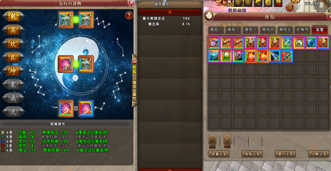 不同法宝有着不同属性加成和组合效果。