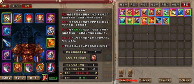 玩家可通过消耗金币基本获取法宝