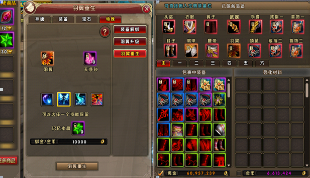 羽翼升级后随即或获取随机的技能,玩家如若对生成的技能不满意可通过羽翼重生,重置等级重新学习新的技能。可用记忆水晶保留一个技能进行传承!